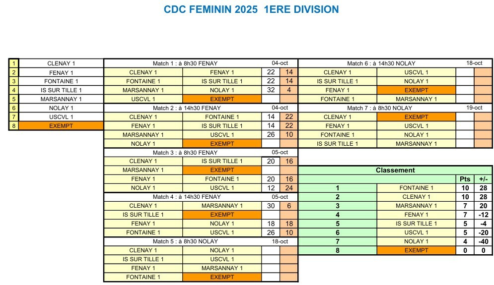 Classement de l'équipe de Nathalie LEVY après 3 rencontres